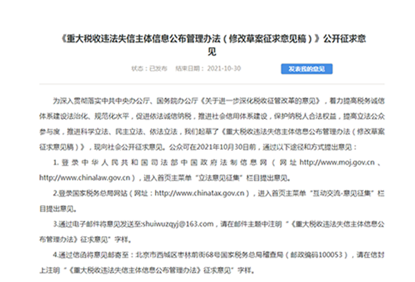 9月30日,國家稅務總局發布《重大稅收違法失信主體信息公布管理辦法》(修改草案征求意見稿):