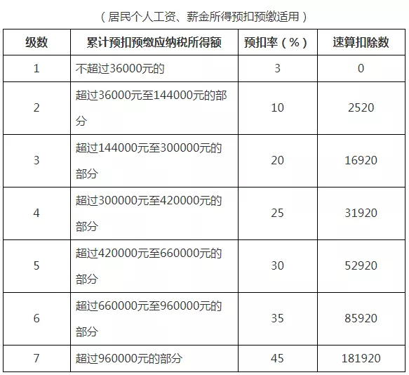 二、個人所得稅預扣稅率表